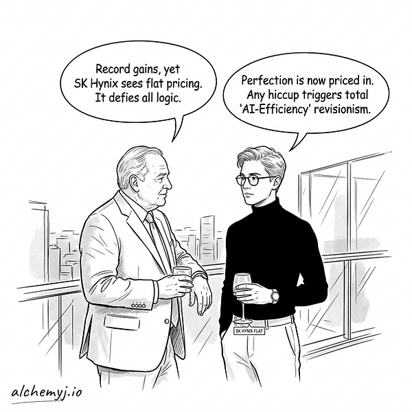 展望:尽管SK 海力士目前正从 AI 热潮中获取巨额收入,但持平的股价表现显示投资者担心内存周期已见顶,并质疑高毛利的 HBM 需求能否支撑长期增长。